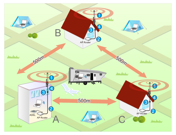 Results will differ based on the different types of high gain antennas, the environment, and user requirements. In general, the high gain antennas with wider beam-width are better for short distance coverage / multiple-points setup. In contrast, Omni and directional antennas are suitable for long distance coverage, and they use repeaters to extend their signals.